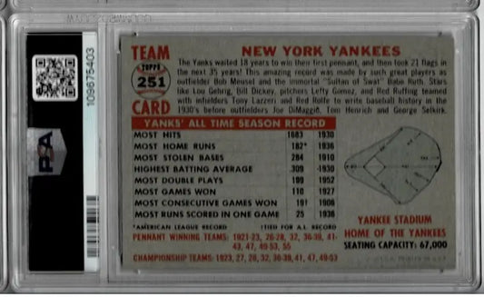 1956 Topps Baseball #251 New York Yankees Team PSA 6 EX