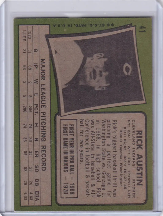 1971 Topps Baseball #41 Rick Austin - Cleveland Indians RC