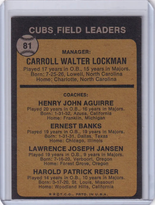 1973 Topps Baseball #81 Whitey Lockman/Ernie Banks - Chicago Cubs Coaches