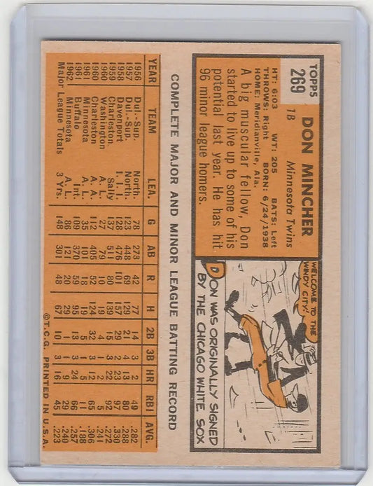 1963 Topps #269 Don Mincher Minnesota Twins EXMT 1B