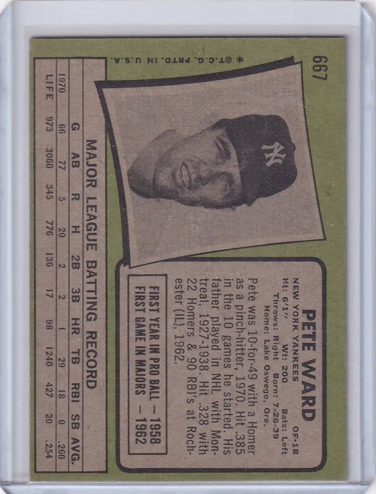 1971 Topps Baseball #667 Pete Ward - New York Yankees
