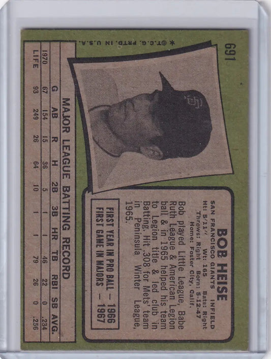 1971 Topps Baseball #691 Bob Heise - San Francisco Giants