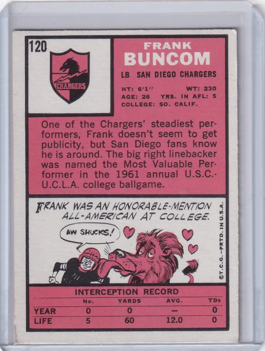 1966 Topps Football #120 Frank Buncom - San Diego Chargers