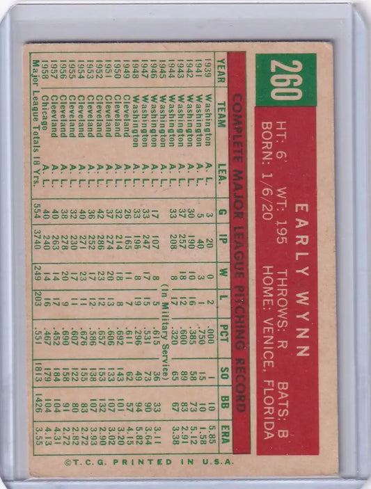1959 Topps Baseball #260 Early Wynn - Chicago White Sox