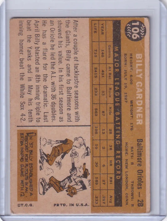 1960 Topps #106 Billy Gardner - Baltimore Orioles