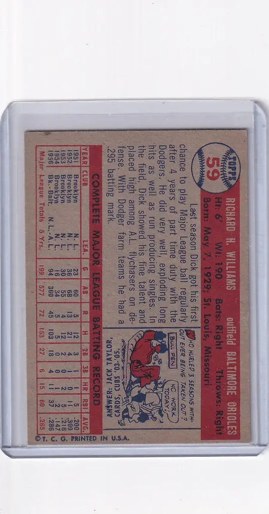 1957 Topps Baseball #59 Dick Williams Baltimore Orioles