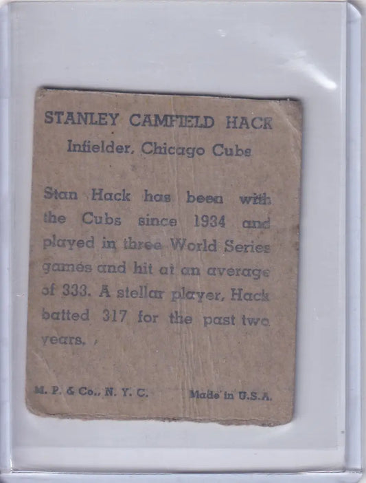 1943 R302-01 M.P. & Co Stan Hack - Chicago Cubs