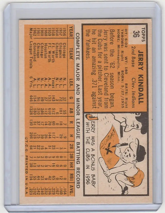 1963 Topps #36 Jerry Kindall Cleveland Indians EXMT