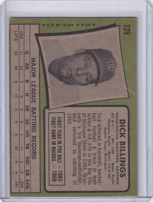 1971 Topps Baseball #729 Dick Billings - Washington Senators RC