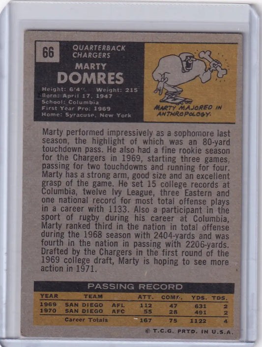 1971 Topps Football #66 Marty Domres - San Diego Chargers RC