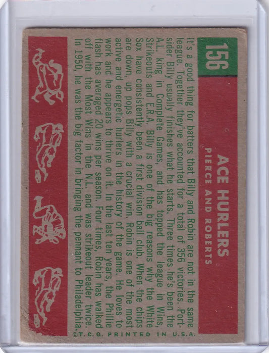 1959 Topps Baseball #156 Ace Hurlers - Billy Pierce / Robin Roberts