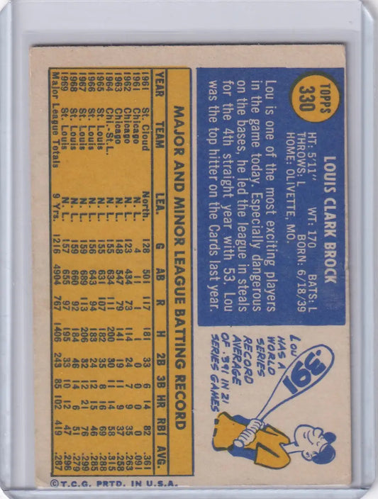 1970 Topps Baseball #330 Lou Brock - St. Louis Cardinals