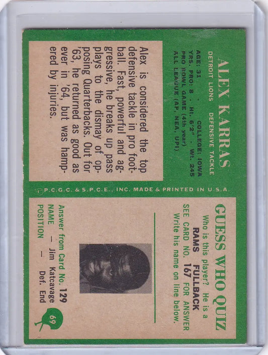 1966 Philadelphia Football #69 Alex Karras - Detroit Lions