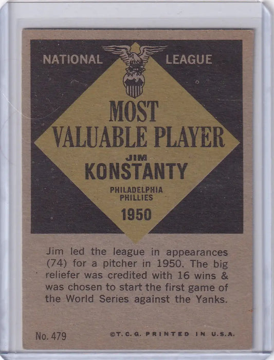1961 Topps #479 Jim Konstanty - Philadelphia Phillies MVP