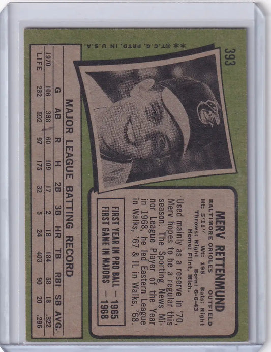 1971 Topps Baseball #393 Merv Rettenmund - Baltimore Orioles