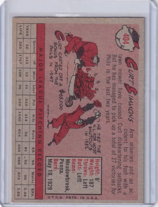 1958 Topps #404 Curt Simmons - Philadelphia Phillies