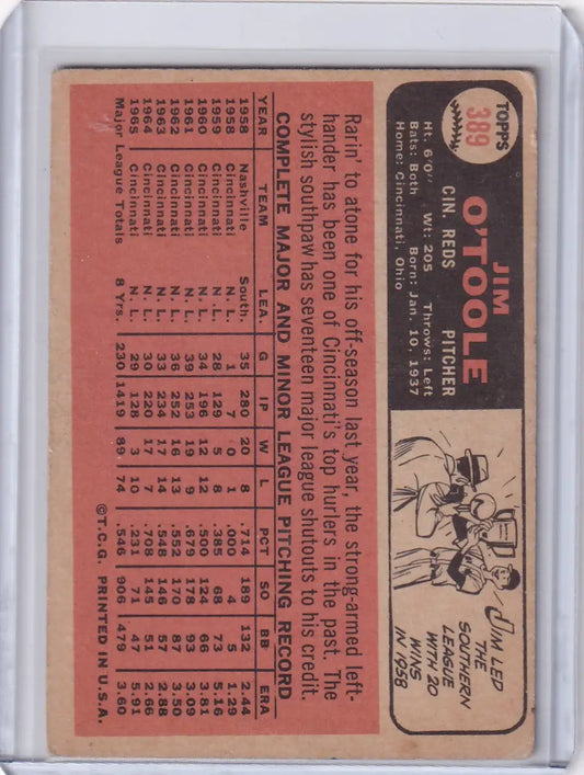 1966 Topps Baseball #389 Jim O'Toole - Cincinnati Reds