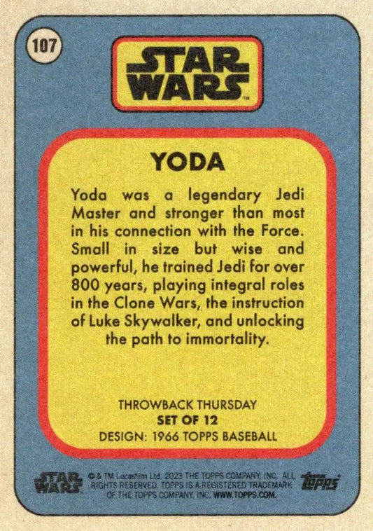 Star Wars Throwback Thursday 2023 Card #107 Yoda 1966 Topps Baseball