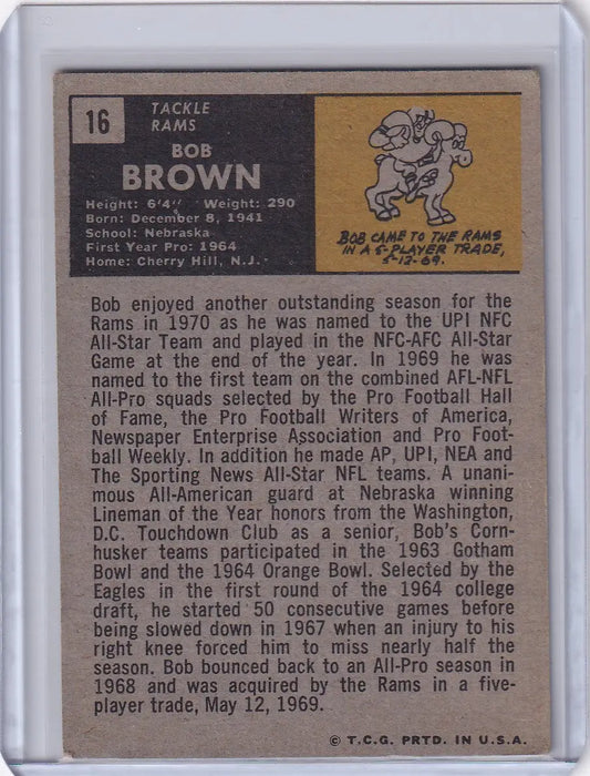 1971 Topps Football #16 Bob Brown - Los Angeles Rams