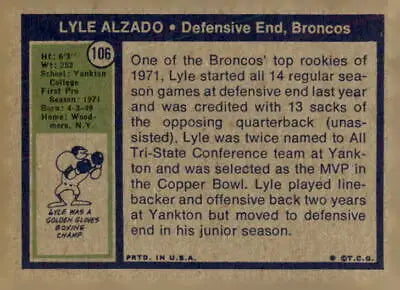 1972 Topps #106 Lyle Alzado EX-MT