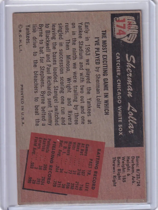 1955 Bowman Baseball #174 Sherm Lollar - Chicago White Sox