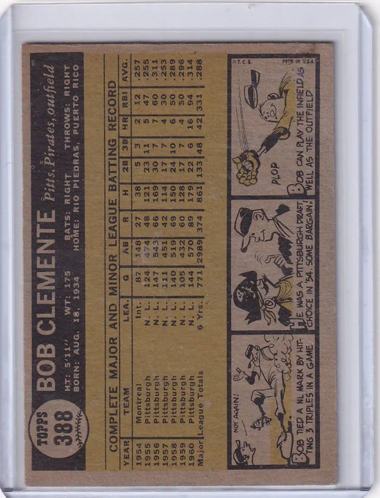 1961 Topps #388 Roberto Clemente - Pittsburgh Pirates