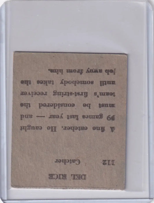1949 R302-02 M.P. & Co #112 Del Rice - St Louis Cardinals