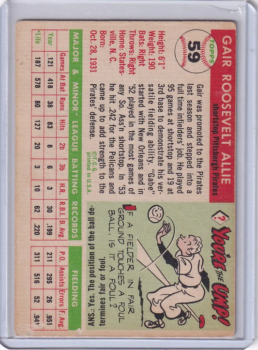 1955 Topps #59 Gair Allie - Pittsburgh Pirates