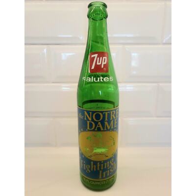 Vintage 1973 7UP Bottle Notre Dame Fighting Irish Football Commemorative