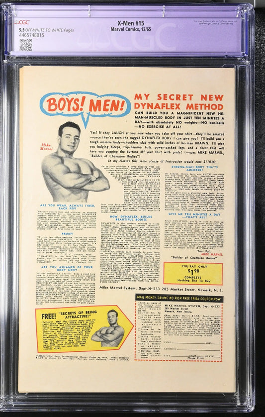 X-Men 15 (1965) Graded CGC 5.5 Purple Label Small Color Touch