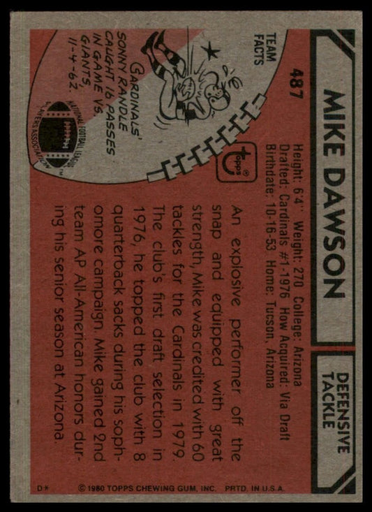 1980 Topps Mike Dawson #487 St Louis Cardinals Football Card NFL Sports