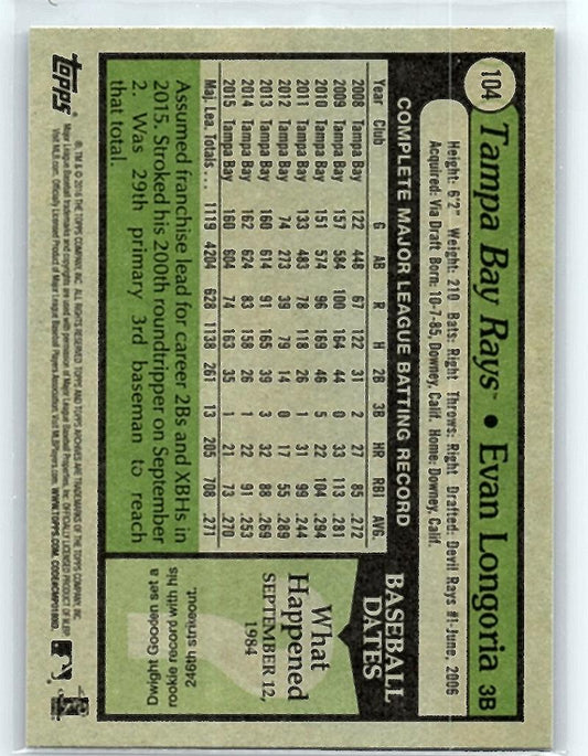 2016 Topps Archives #104 Evan Longoria NM-MT Rays 1979 Design ID:1542