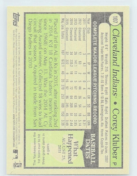 2016 Topps Archives #107 Corey Kluber NM-MT Indians 1979 Design ID:1543