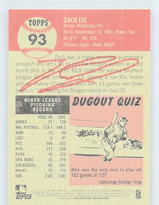 2016 Topps Archives #93 Zach Lee NM-MT RC Rookie Dodgers 1953 Design ID:1539