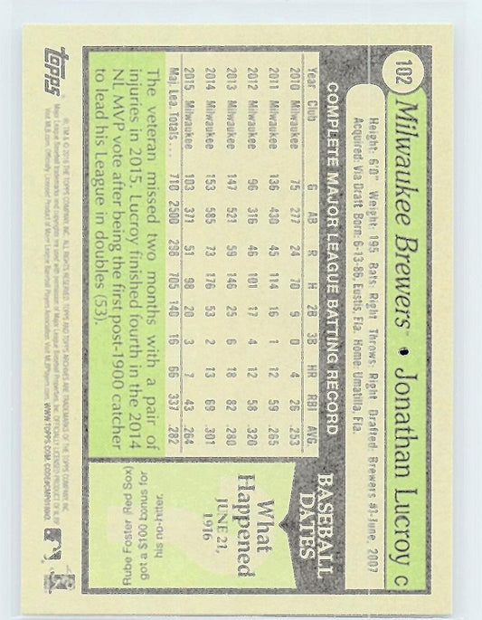 2016 Topps Archives #102 Jonathan Lucroy NM-MT Brewers 1979 Design ID:1541