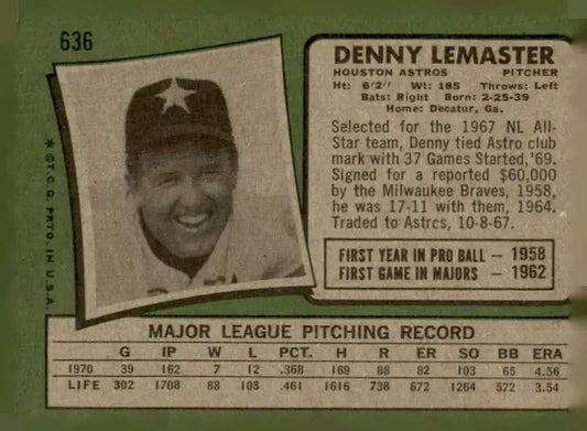 1971 Topps #636 Denny Lemaster EX