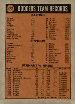 1972 Topps #522 Los Angeles Dodgers EX-MT