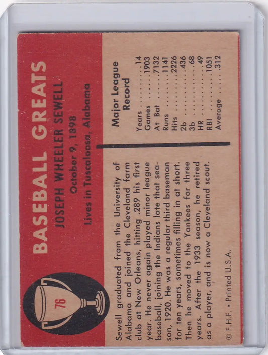 1961 Fleer Baseball #76 – Joe Sewell - New York Yankees