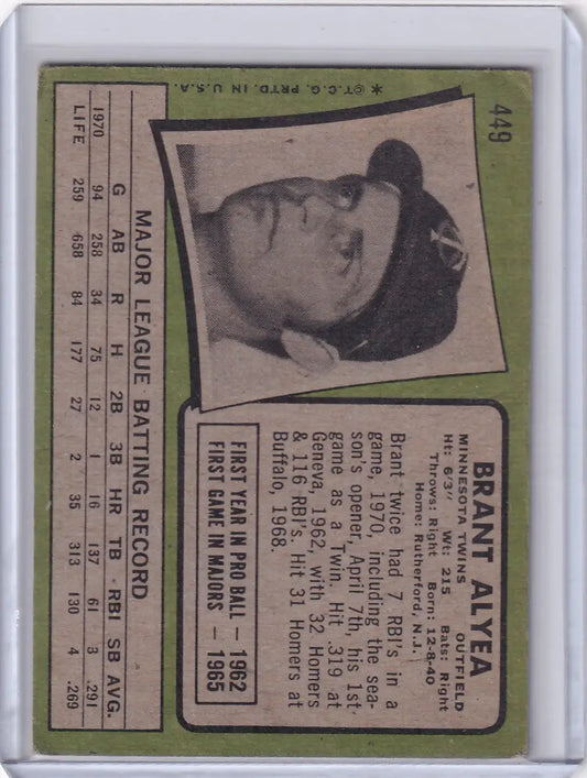 1971 Topps Baseball #449 Brant Alyea - Minnesota Twins