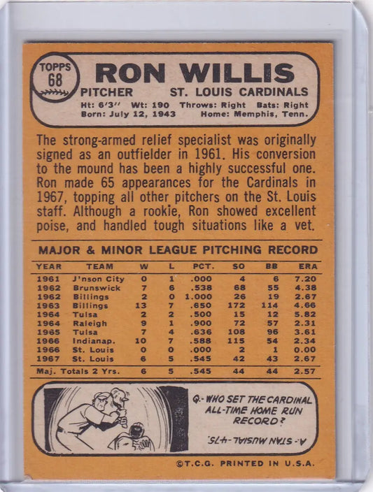 1968 Topps Baseball #68 Ron Willis - St. Louis CardinalsRegular price $2.61 USDRegular priceUnit price / per-