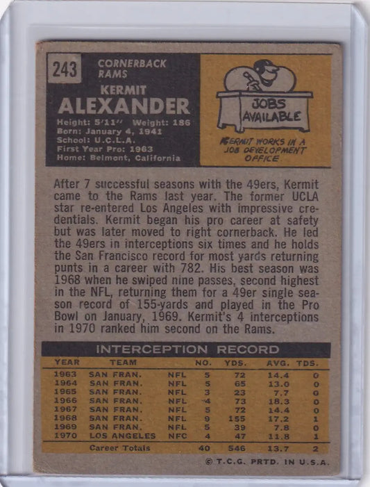 1971 Topps Football #243 Kermit Alexander - Los Angeles Rams
