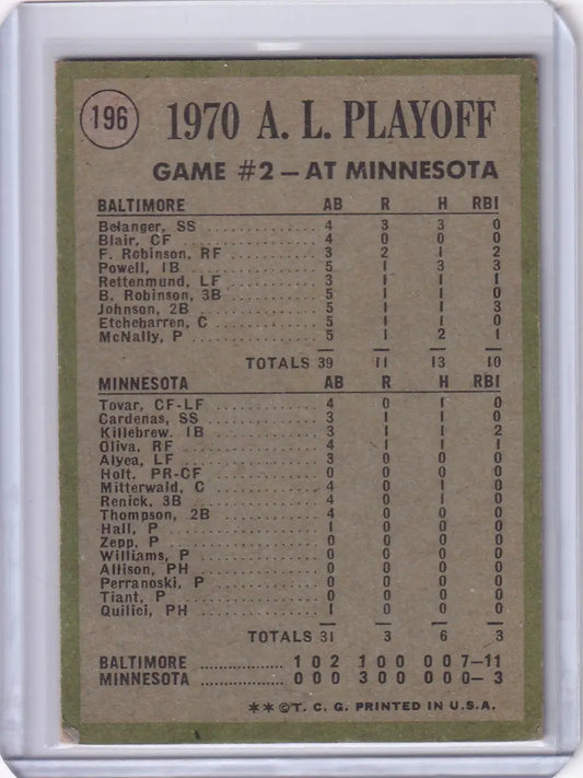 1971 Topps Baseball #196 AL Playoffs Game 2 - McNally Makes It Two Straight!