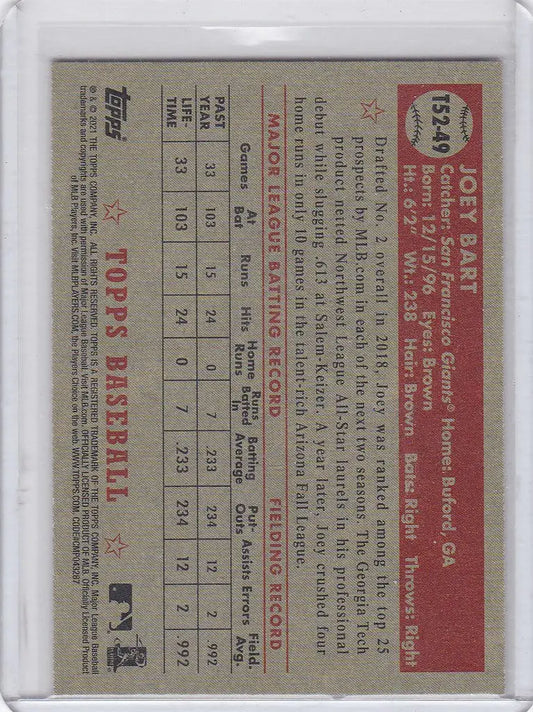 2021 Topps #T52-49 Joey Bart RC 1952 Redux San Francisco Giants
