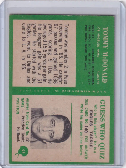 1966 Philadelphia Football #97 Tommy McDonald - Los Angeles Rams