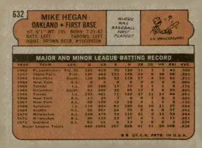 1972 Topps #632 Mike Hegan EX-MT