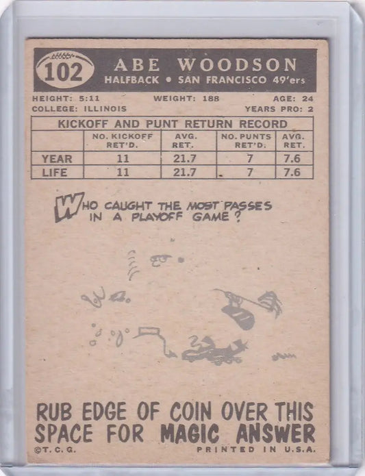 1959 Topps Football # 102 Abe Woodson RC - San Francisco 49ers