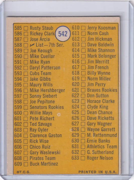 1970 Topps Baseball #542 6th Series Checklist (#547-633 )