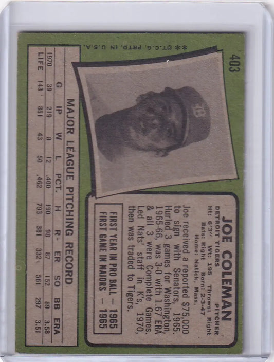 1971 Topps Baseball #403 Joe Coleman - Detroit Tigers