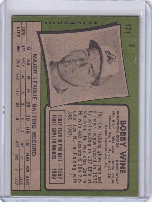 1971 Topps Baseball #171 Bobby Wine - Montreal Expos