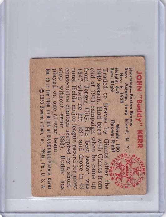 1950 Bowman Baseball #55 Buddy Kerr - Boston BravesRegular price $37.95 USDRegular priceUnit price / per-